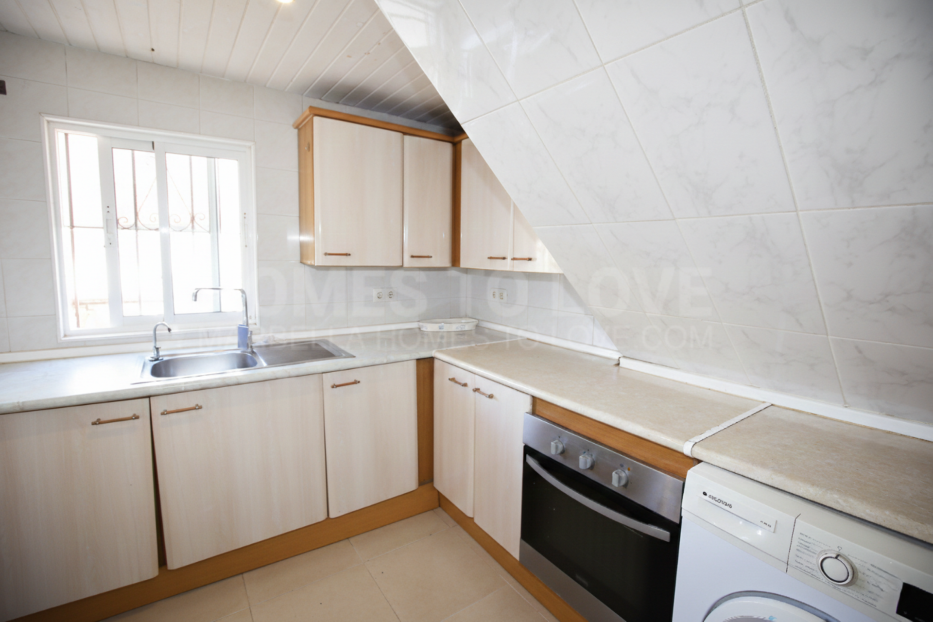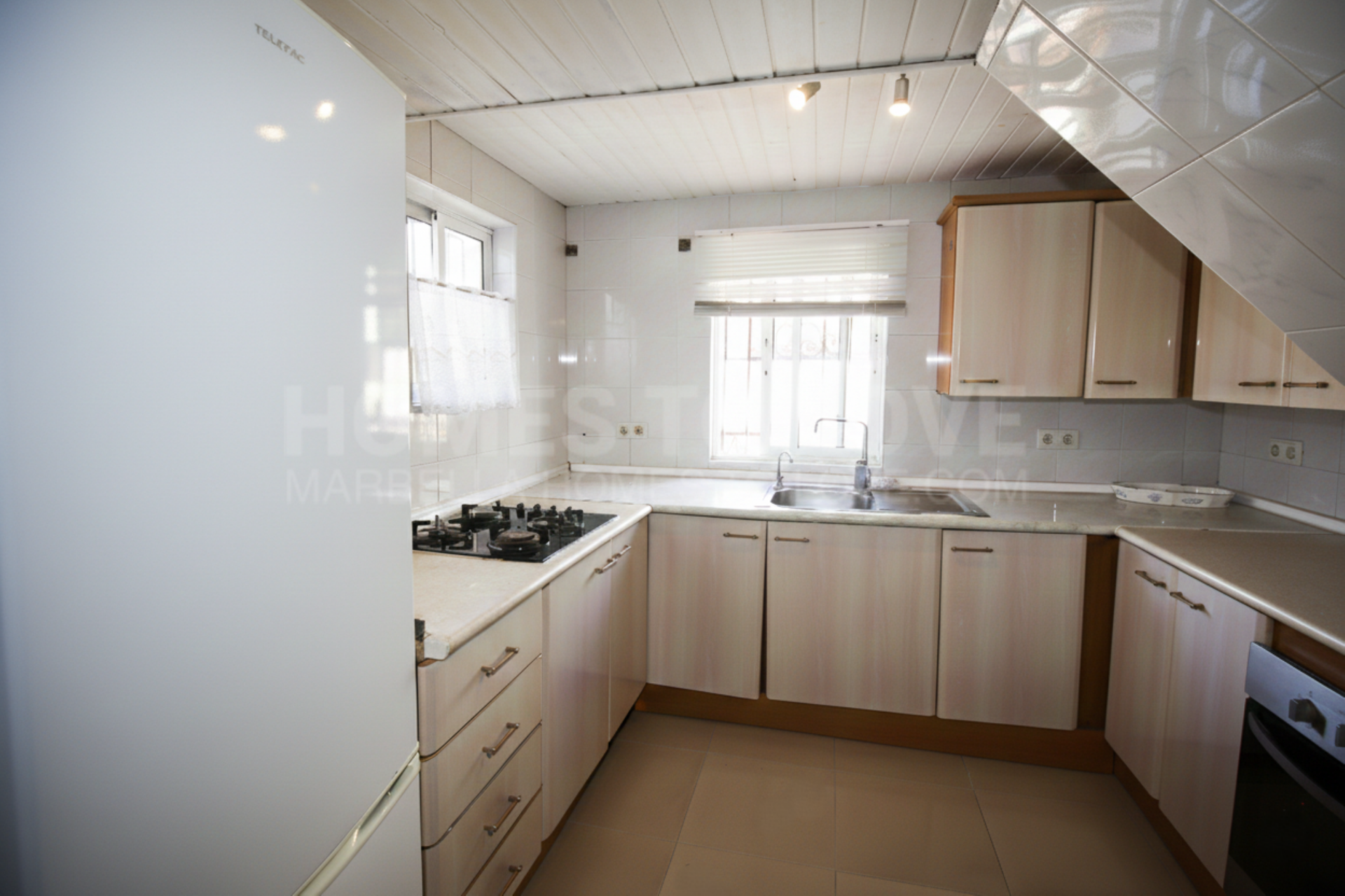 Charmantes Vier-Zimmer-Doppelhaus mit hervorragendem Potenzial, ideal gelegen in Calypso, Mijas Costa. Nur wenige Gehminuten vom Strand und den lokalen Annehmlichkeiten gelegen, so dass es sowohl als Familienhaus als auch als Anlageobjekt geeignet ist. Das Anwesen verfügt über eine private Garage und einen Straßenbahn Carport, mit Treppen, die zum Haupteingang und zur Terrasse führen. Das Erdgeschoss bietet einen hellen Wohn- und Essbereich mit Kamin, eine voll ausgestattete Küche, zwei Schlafzimmer und ein Badezimmer. Das Wohnzimmer und ein Schlafzimmer öffnen sich auf eine nach Süden ausgerichtete Terrasse mit zusätzlichem Zugang auf Straßenebene, ideal für das Wohnen im Freien und einfache Zugänglichkeit. Im Obergeschoss befinden sich zwei weitere Schlafzimmer, darunter ein Hauptschlafzimmer mit eigenem Bad und eine sonnige Terrasse mit Meerblick. Zu den weiteren Einrichtungen gehören ein geräumiger Abstellraum hinter der Garage, Alarmanlage, Fenster-Sicherheitsriegel und Solarpaneele für heißes Wasser.