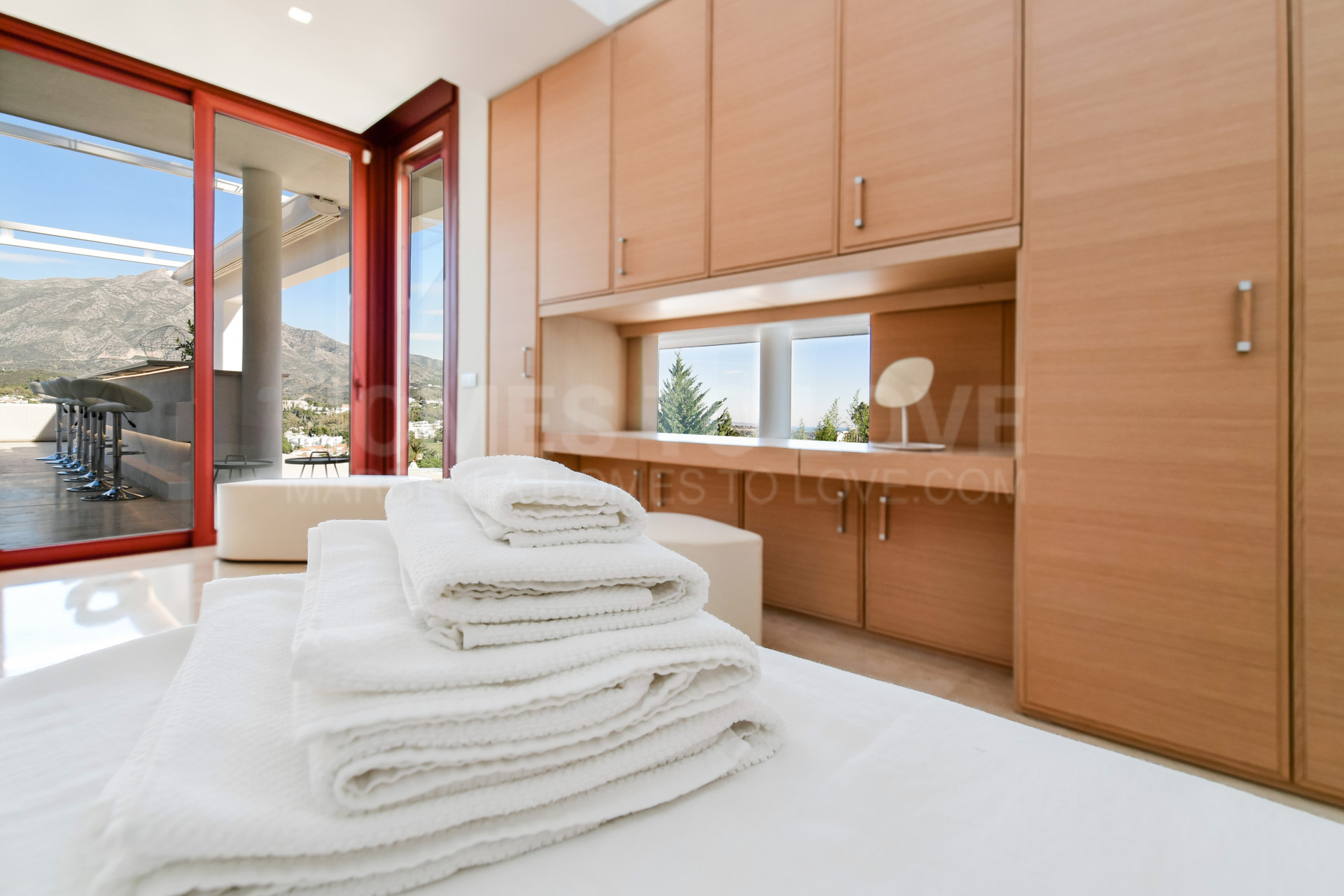 Sus 7 dormitorios se encuentran bien separados para conseguir una total privacidad. Encontrará dos dormitorios principales en el segundo nivel con acceso al bar y al salón. El impresionante dormitorio principal es espacioso, con un gran baño en suite y vistas al valle y al mar. La planta baja incluye 5 dormitorios con 6 camas king size y 4 baños en suite, todos con acceso a la terraza y a la zona de la piscina. También encontrará un gimnasio al aire libre y un salón, así como una sala de cine y de juegos.