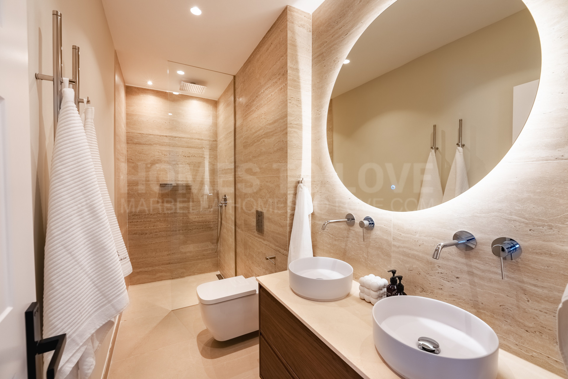 Distribuida en cuatro niveles luminosos y cuidadosamente diseñados, la villa cuenta con un plano abierto contemporáneo que maximiza la luz natural y la conexión entre interiores y exteriores. La planta principal ofrece un amplio salón y comedor conectado a una cocina a medida Nobilia, totalmente equipada con electrodomésticos premium Miele, gran isla central y vinoteca. Las puertas correderas de suelo a techo se abren a la terraza orientada al sur con zona de salón, cocina exterior y comedor, creando un espacio ideal para recibir invitados y disfrutar del clima de Marbella durante todo el año.