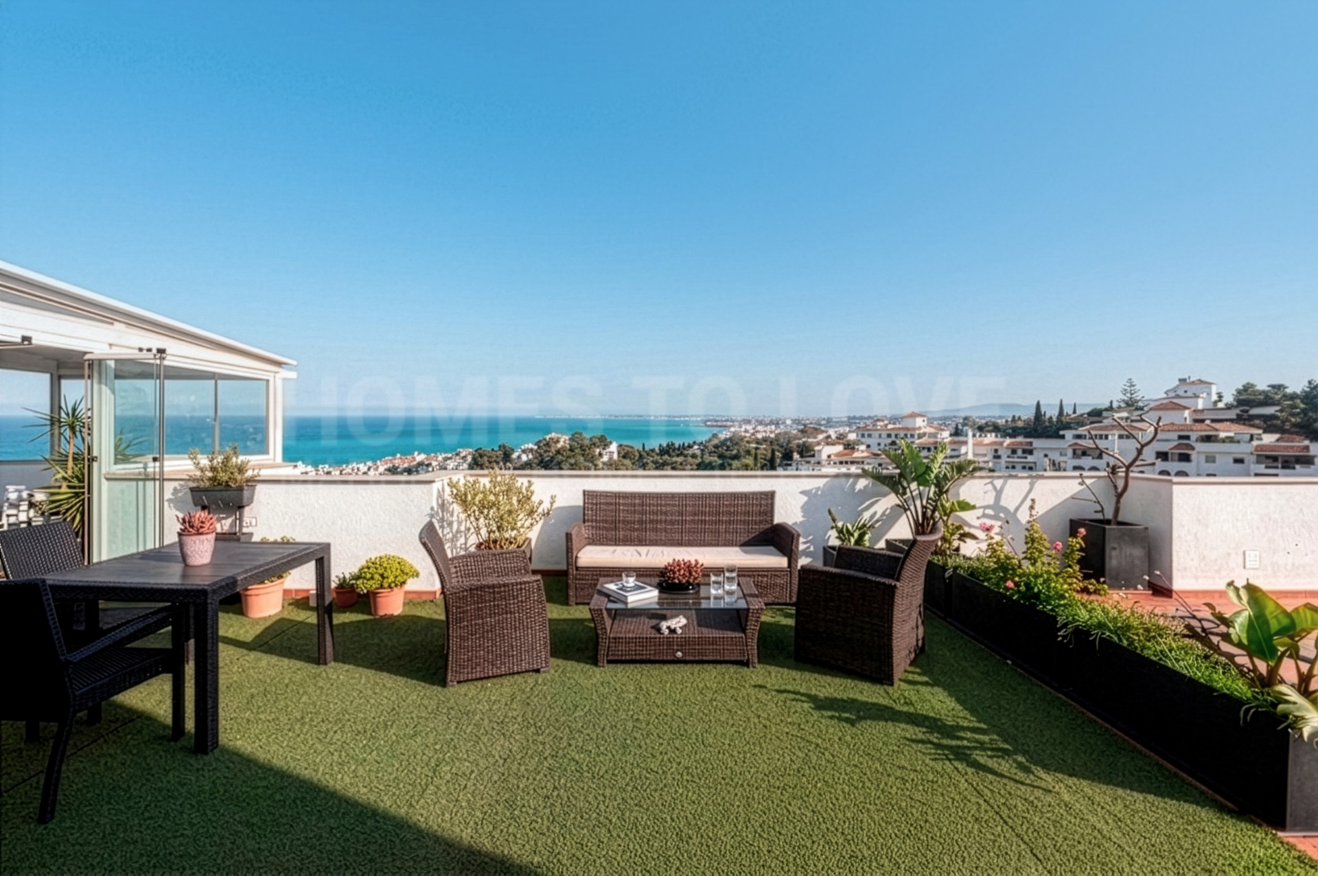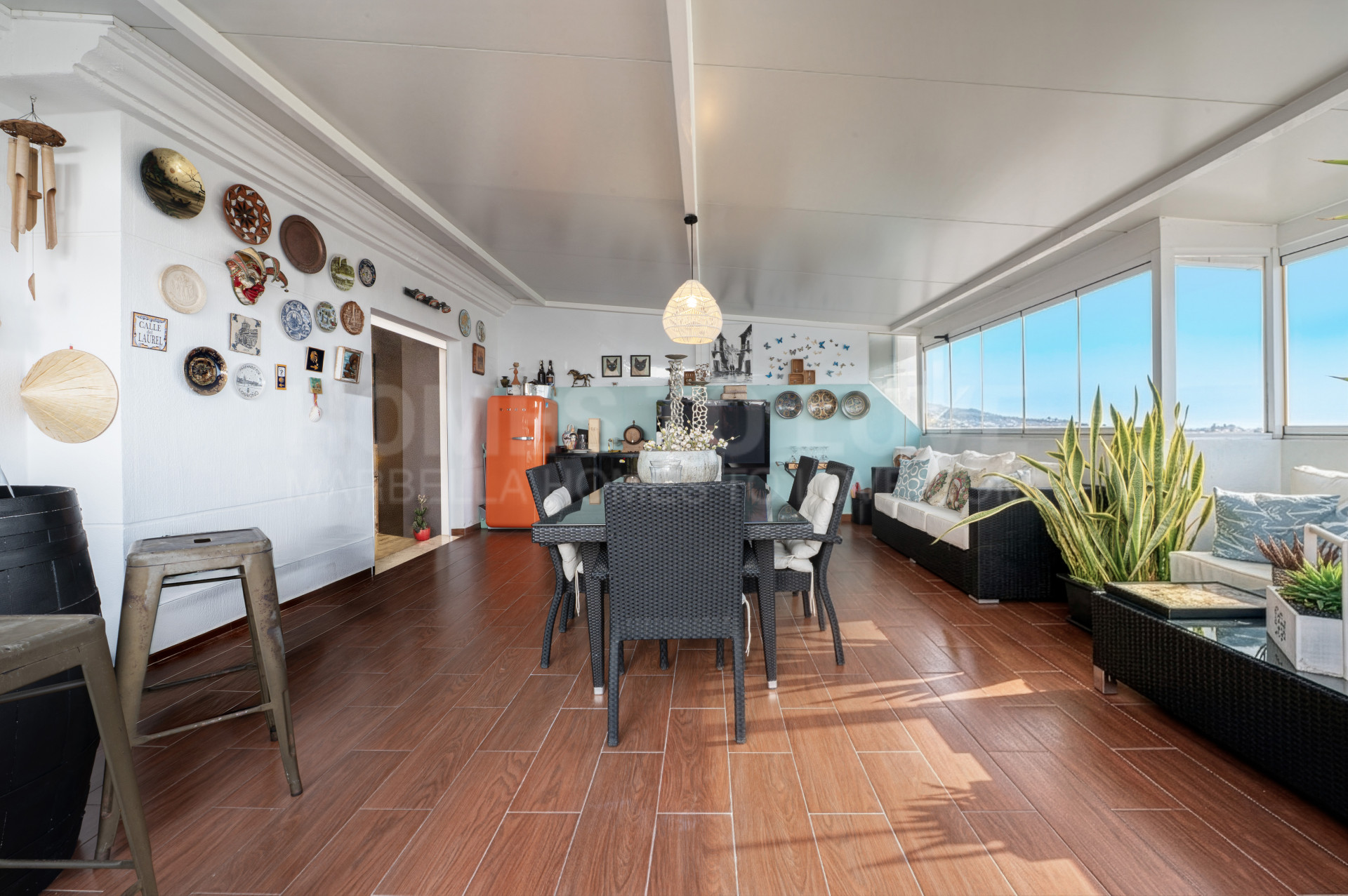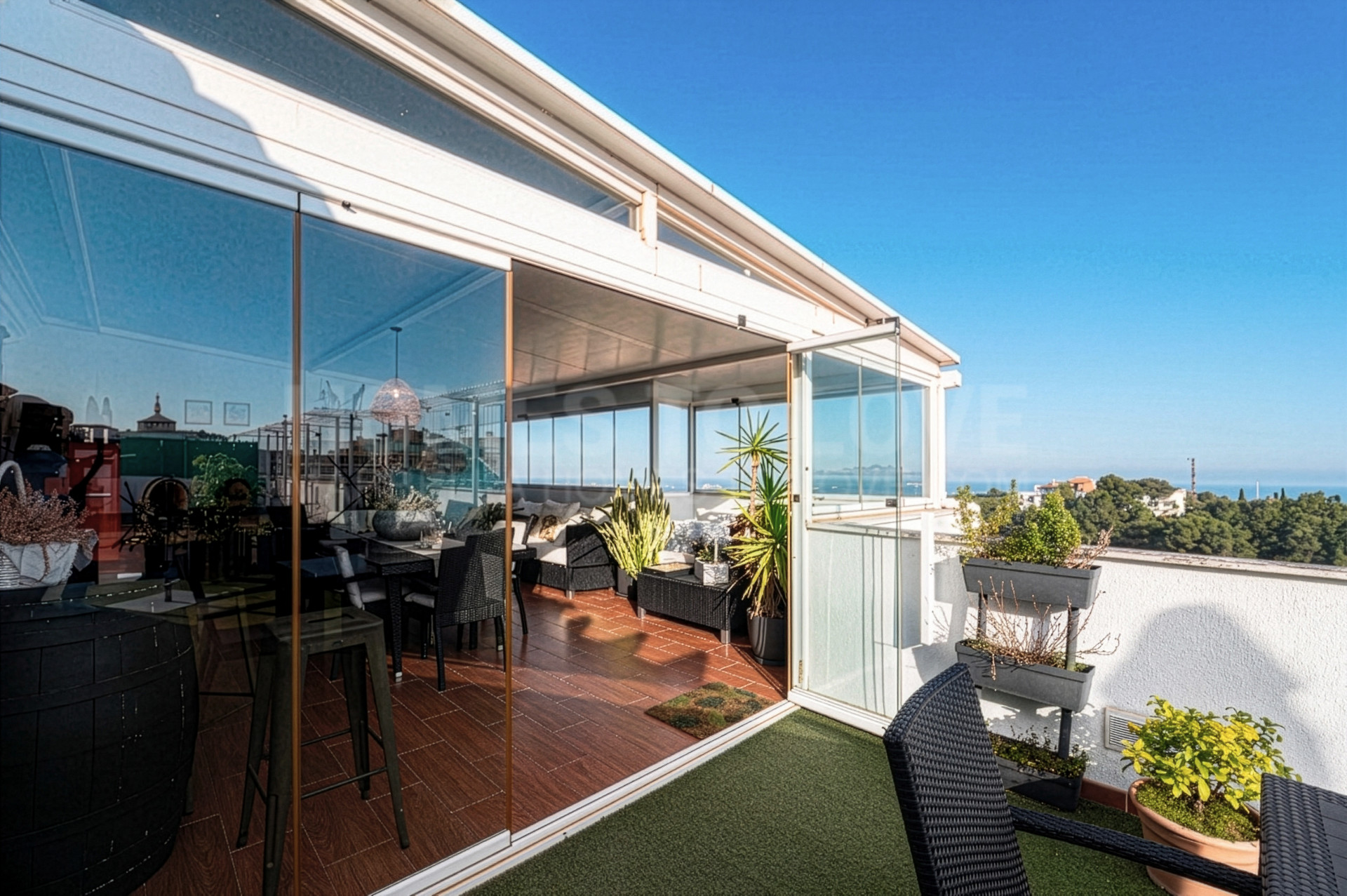 El ático se encuentra en excelentes condiciones, listo para entrar a vivir, y cuenta con impresionantes vistas panorámicas que se pueden disfrutar desde su amplia terraza privada. Este espacio exterior es, sin duda, uno de sus mayores atractivos: de grandes dimensiones, perfecto para comer al aire libre, recibir invitados o simplemente relajarse bajo el sol mediterráneo.