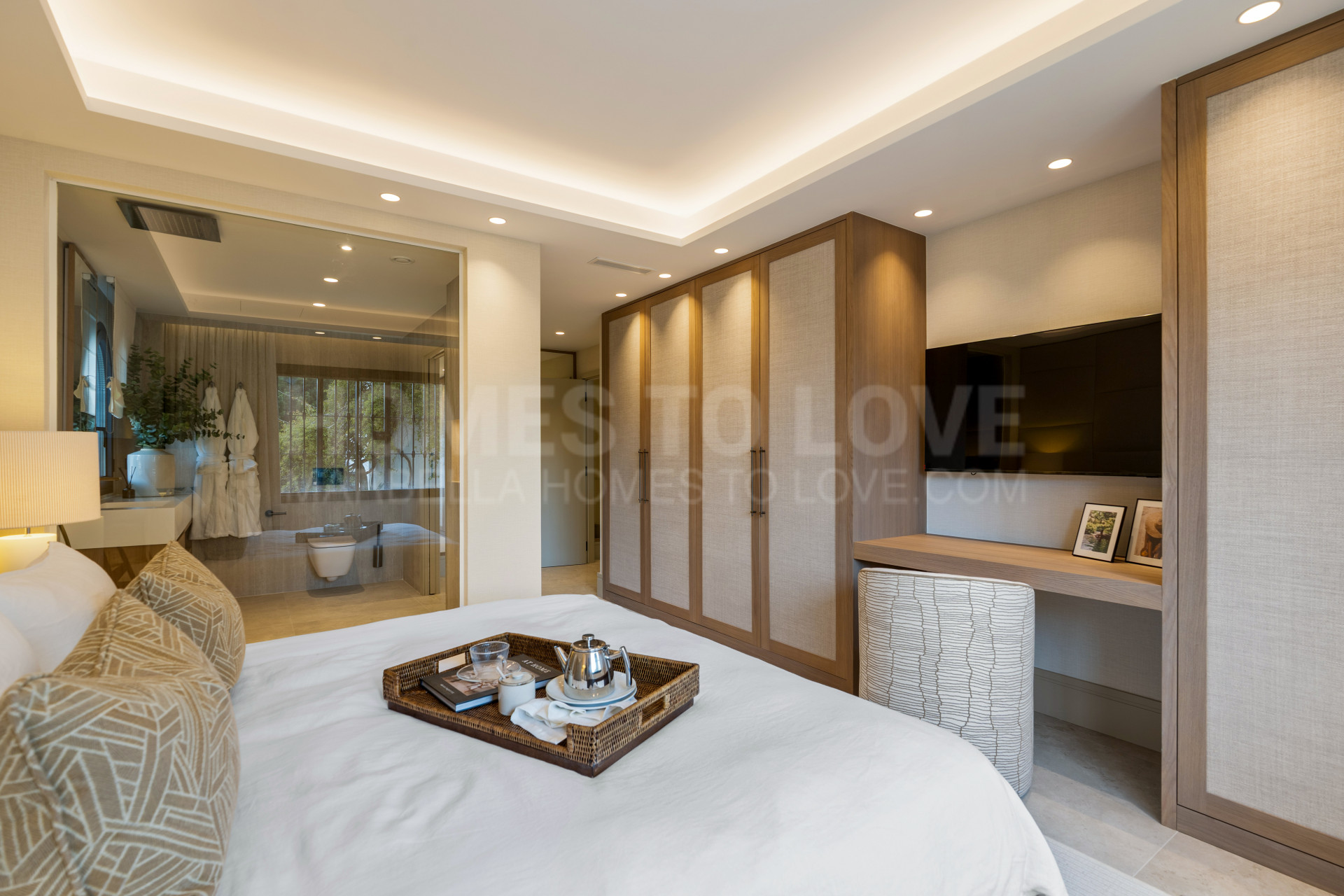 Desde el momento en que entras, la atención al detalle y la artesanía de calidad son inmediatamente aparentes. Cada elemento ha sido cuidadosamente curado, desde el suelo de baldosas cerámicas y muebles a medida, hechos a mano hasta el trabajo de piedra intrincado y carpintería personalizada. Los revestimientos de pared de alta gama de marcas reconocidas como Mark Alexander y Casamance, junto con iluminación ambiental y recesiva cuidadosamente diseñada, crean un entorno cálido y atmosférico. Los baños están terminados con accesorios premium de Ritmonio, subrayando aún más el estándar excepcional de la propiedad.