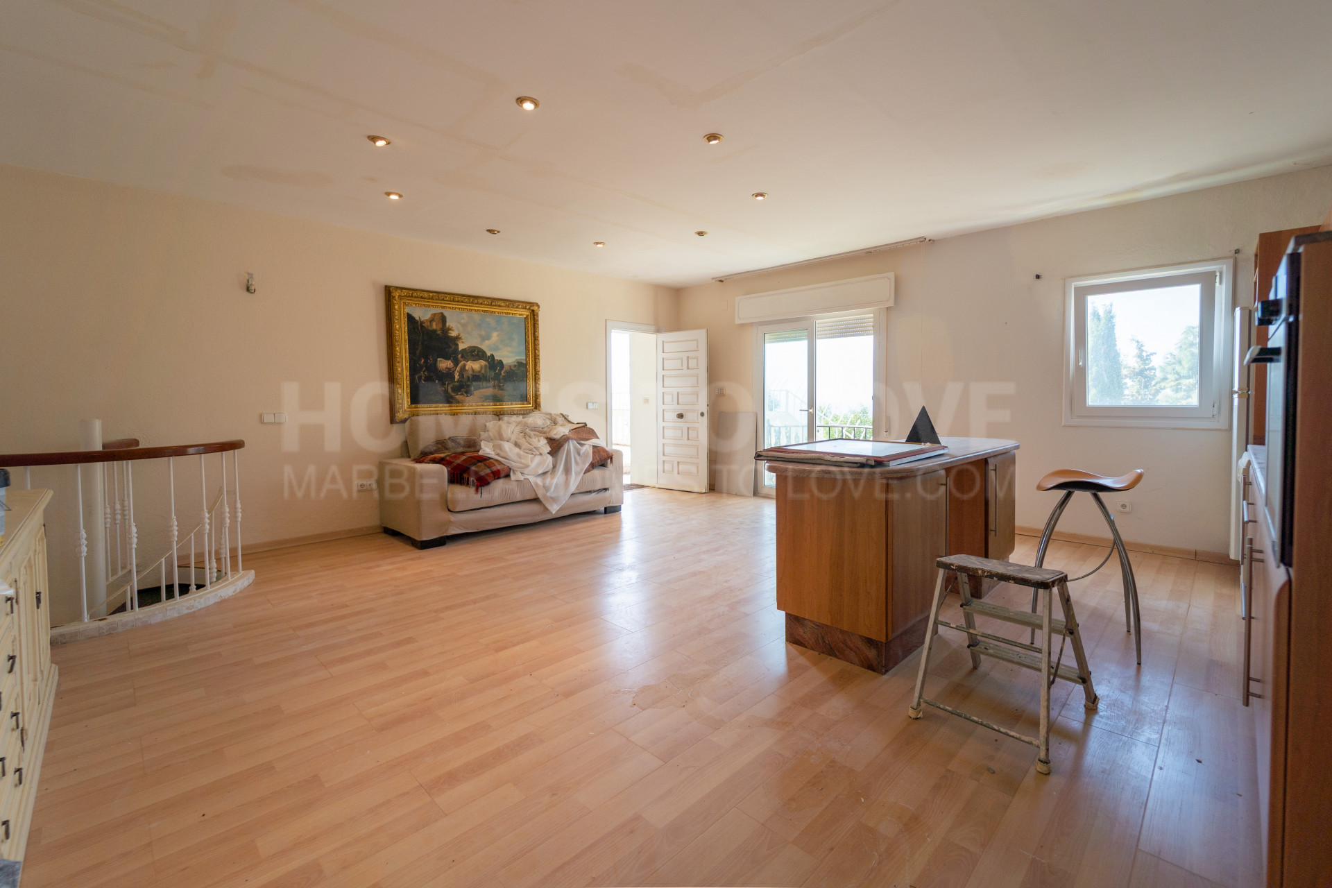En la planta superior hay una amplia habitación, perfecta como salón o sala de juegos. Esta habitación también cuenta con una terraza privada con vistas espectaculares.