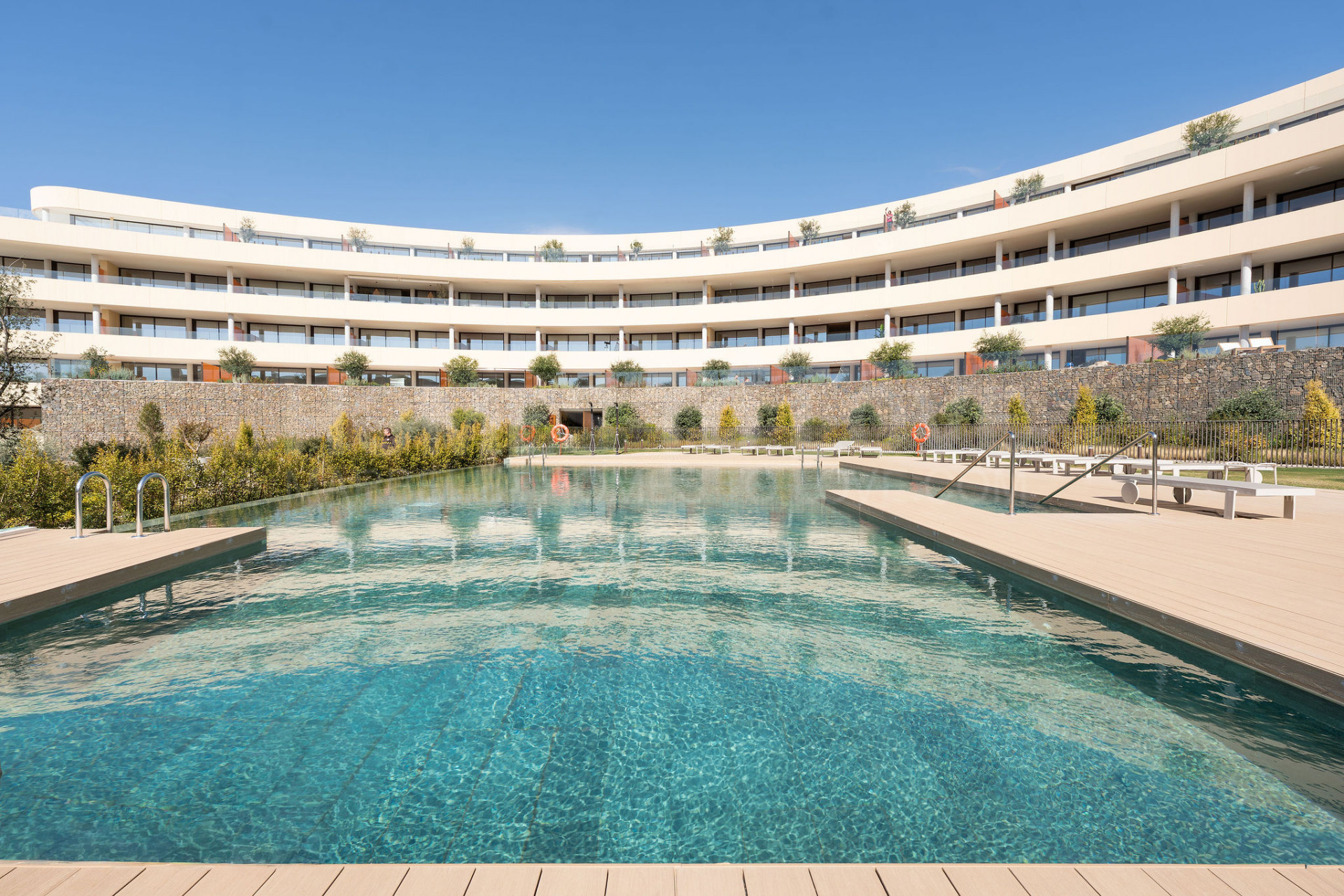 Los residentes se benefician de zonas comunitarias muy bien mantenidas, incluyendo una impresionante piscina situada dentro de jardines paisajísticos, sauna y zona de coworking, así como seguridad 24 horas para una completa tranquilidad.