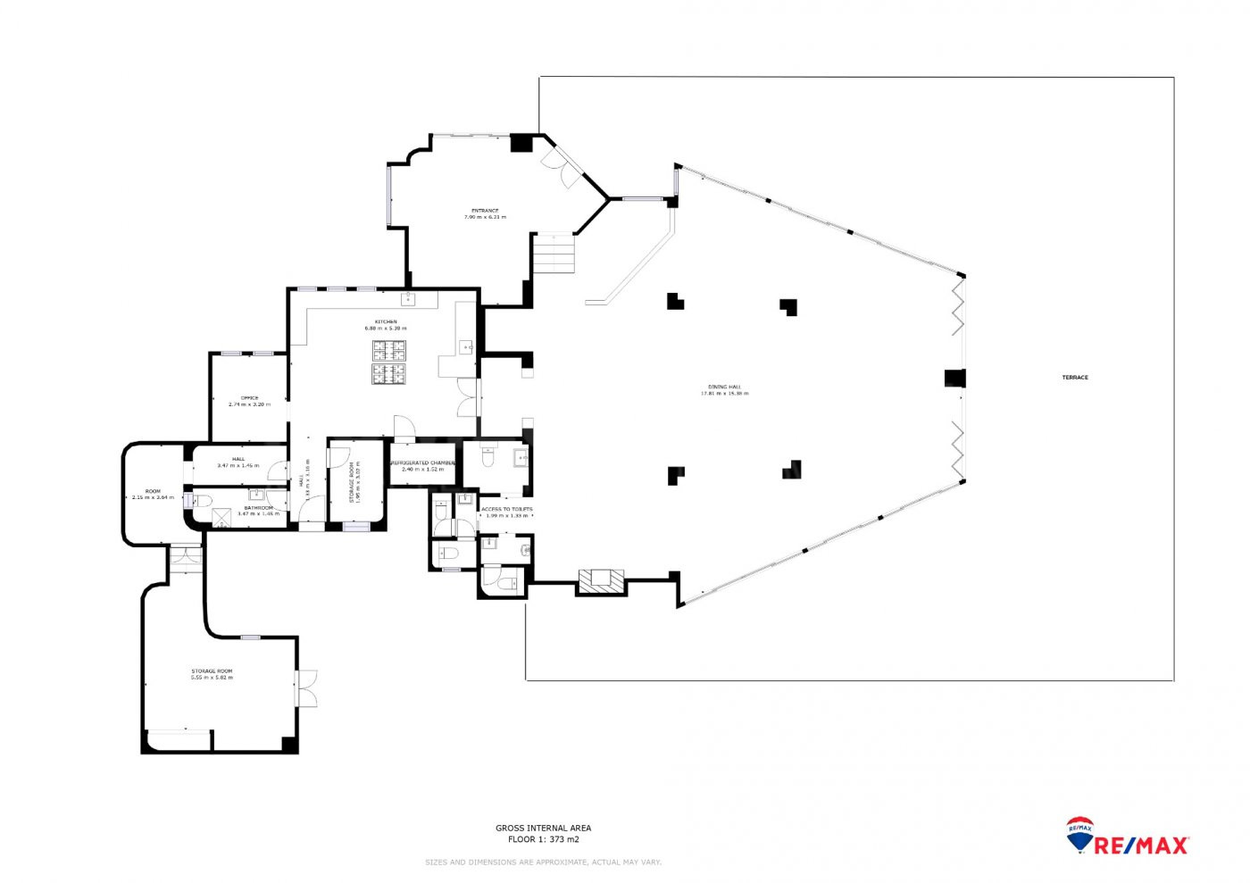 Espacio amplio y prácticamente diáfano, con terrazas, accesos acondicionados, cocina instalada y zonas ajardinadas. El local está listo para comenzar a operar de inmediato.