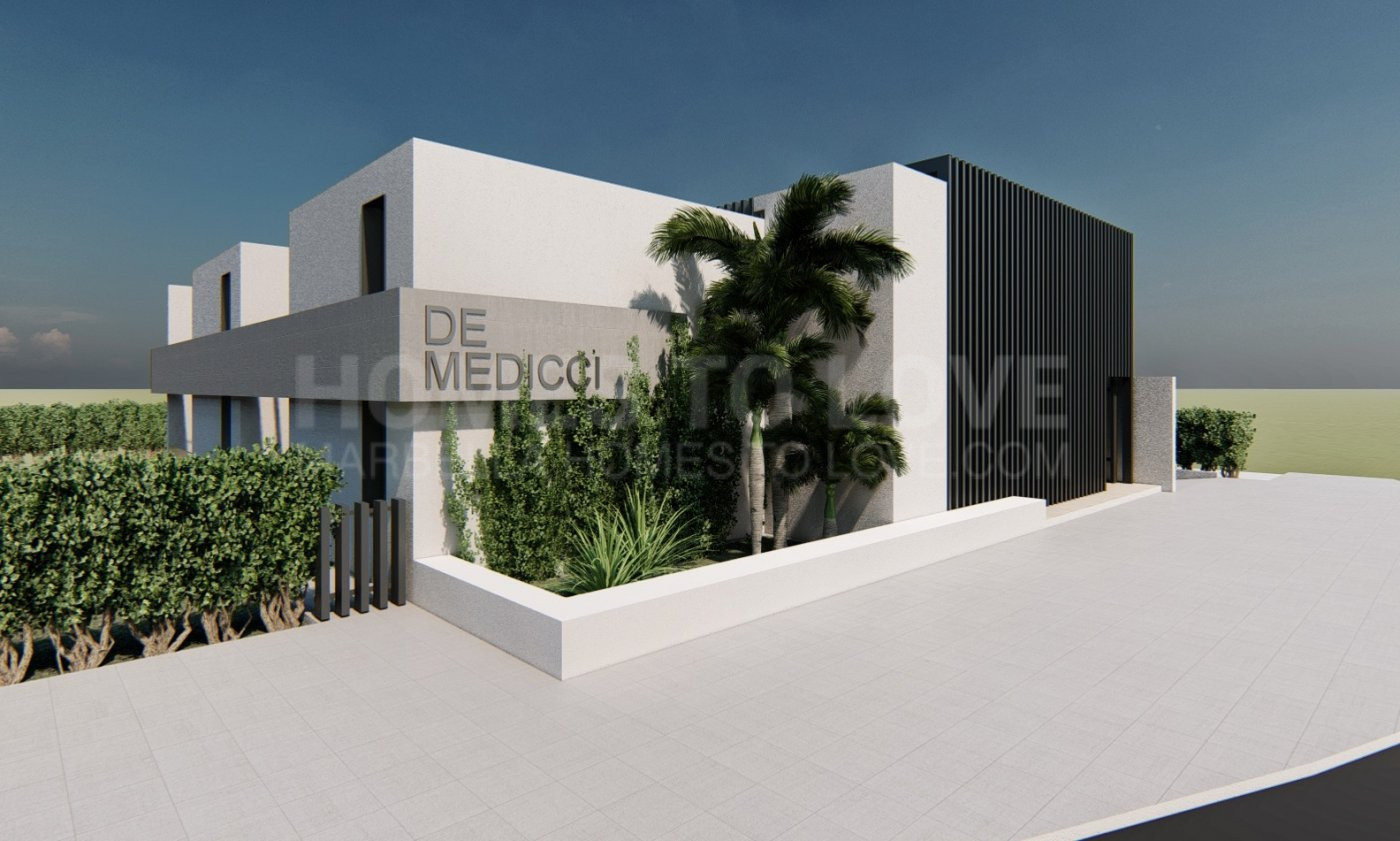En la zona norte de la parcela se contempla la construcción de 8 oficinas o locales, distribuidos en 4 módulos, cada uno dividido en dos unidades tipo loft con planta baja, primera planta y terraza.