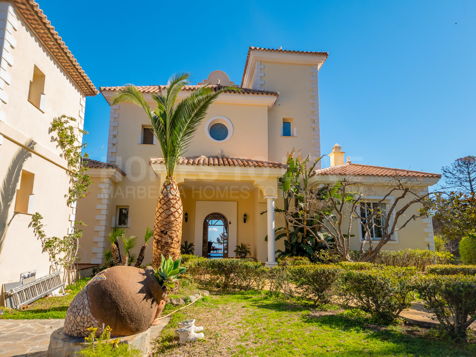 En el exterior, la finca está rodeada de amplios jardines con vegetación consolidada y árboles maduros, entre los que destaca un espectacular aguacatero. La propiedad ofrece además una piscina privada y una pista de pádel, perfectas para disfrutar del clima durante todo el año. Las terrazas exteriores, con una superficie total de 163 m², crean distintos espacios para relajarse, organizar comidas al aire libre o disfrutar de agradables veladas.