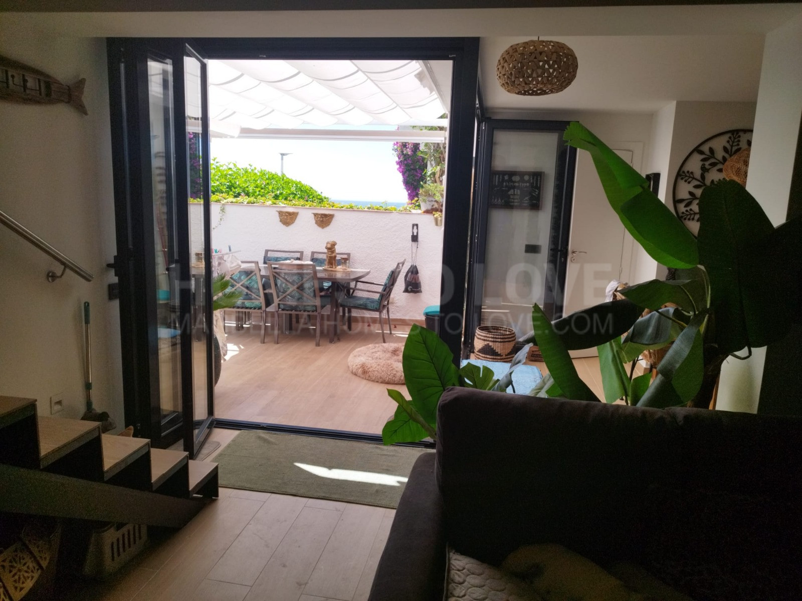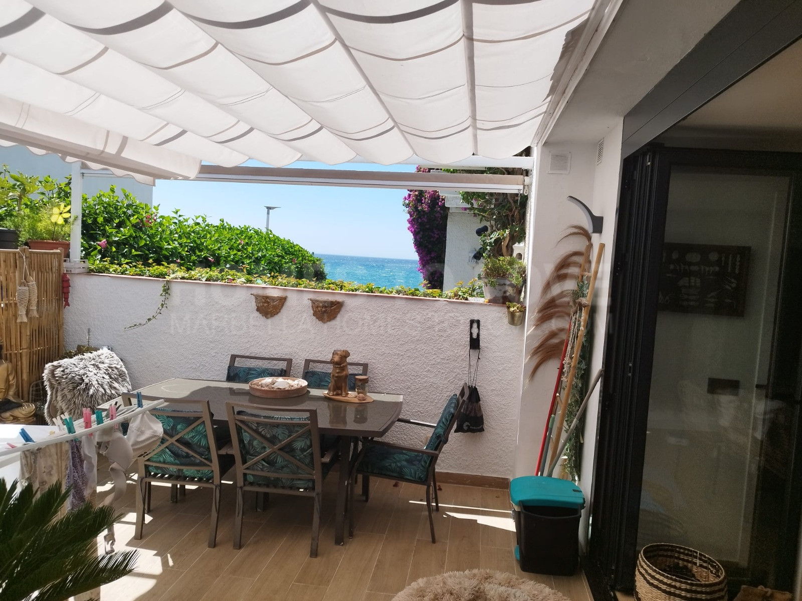 Placer Exterior: Terraza y balcón soleados con impresionantes vistas al mar, más un jardín privado perfecto para relax o comidas al aire libre.