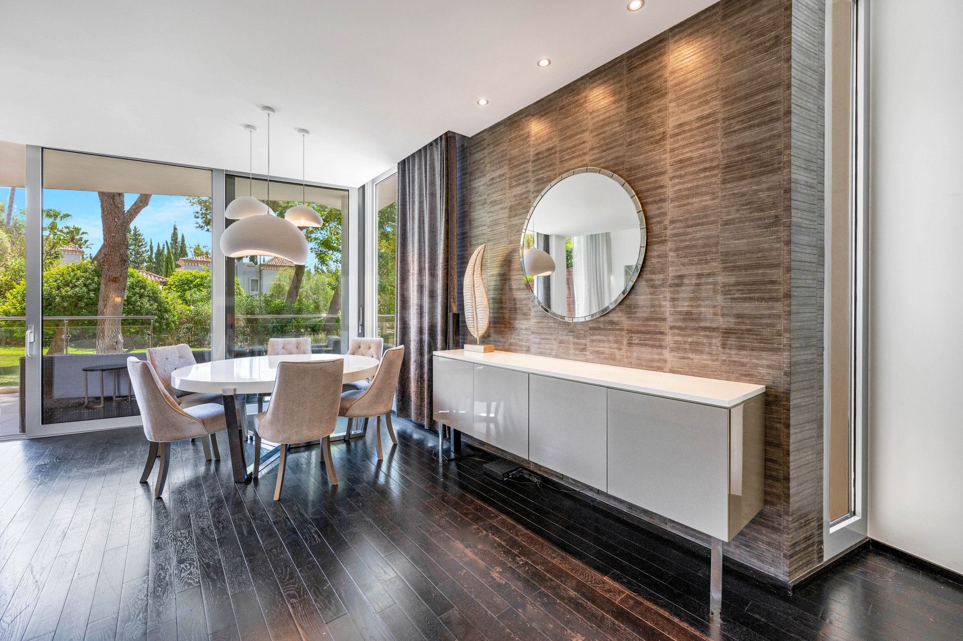 Esta lujosa casa adosada se sitúa en la prestigiosa urbanización Meisho Hills, en la codiciada Milla de Oro de Marbella, Málaga. La propiedad destaca por su excelente ubicación, cercana a todos los servicios, la playa, comercios, colegios y el centro de Marbella. Se trata de una vivienda indicada para quienes buscan confort, seguridad y accesibilidad en uno de los enclaves más exclusivos de la Costa del Sol.