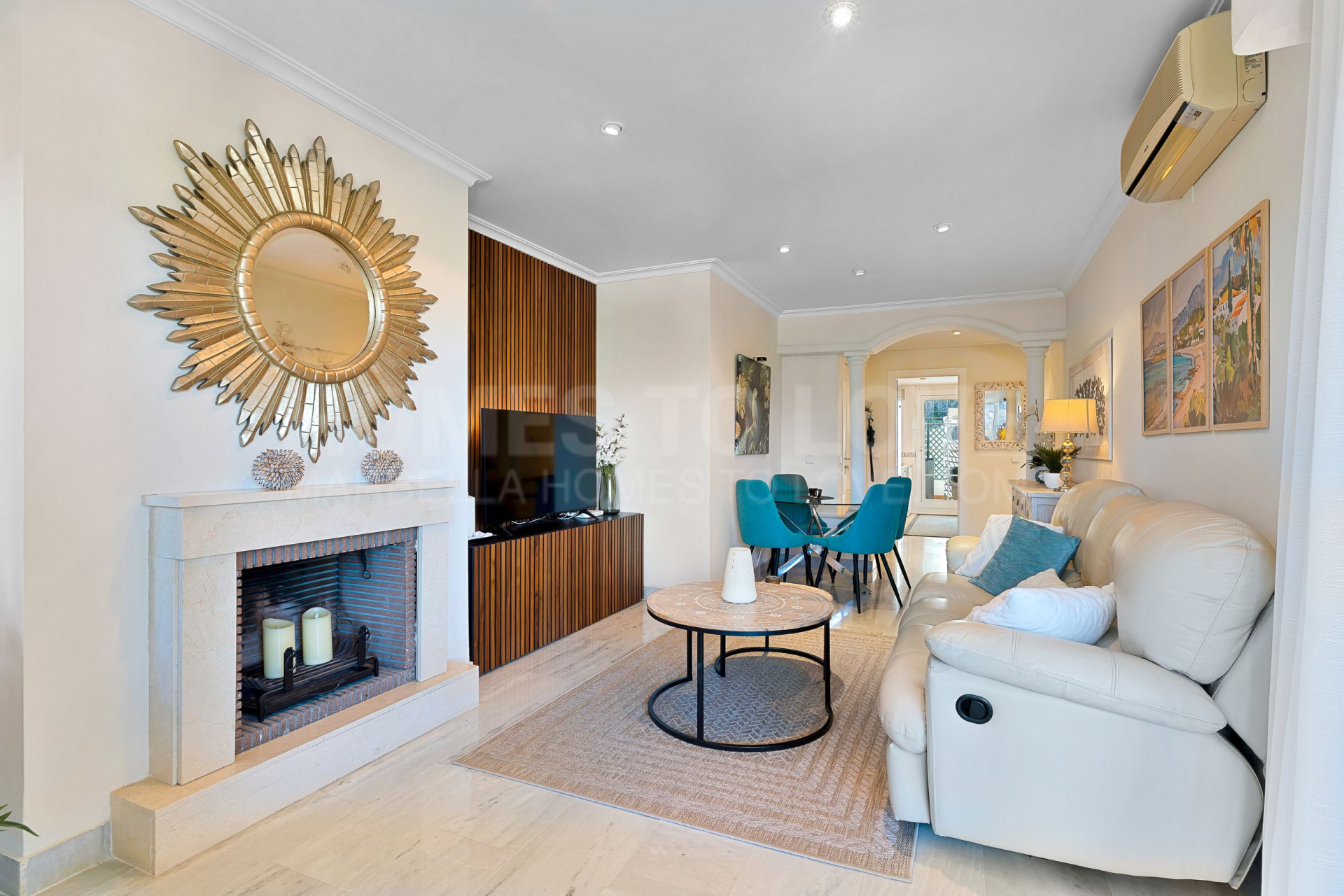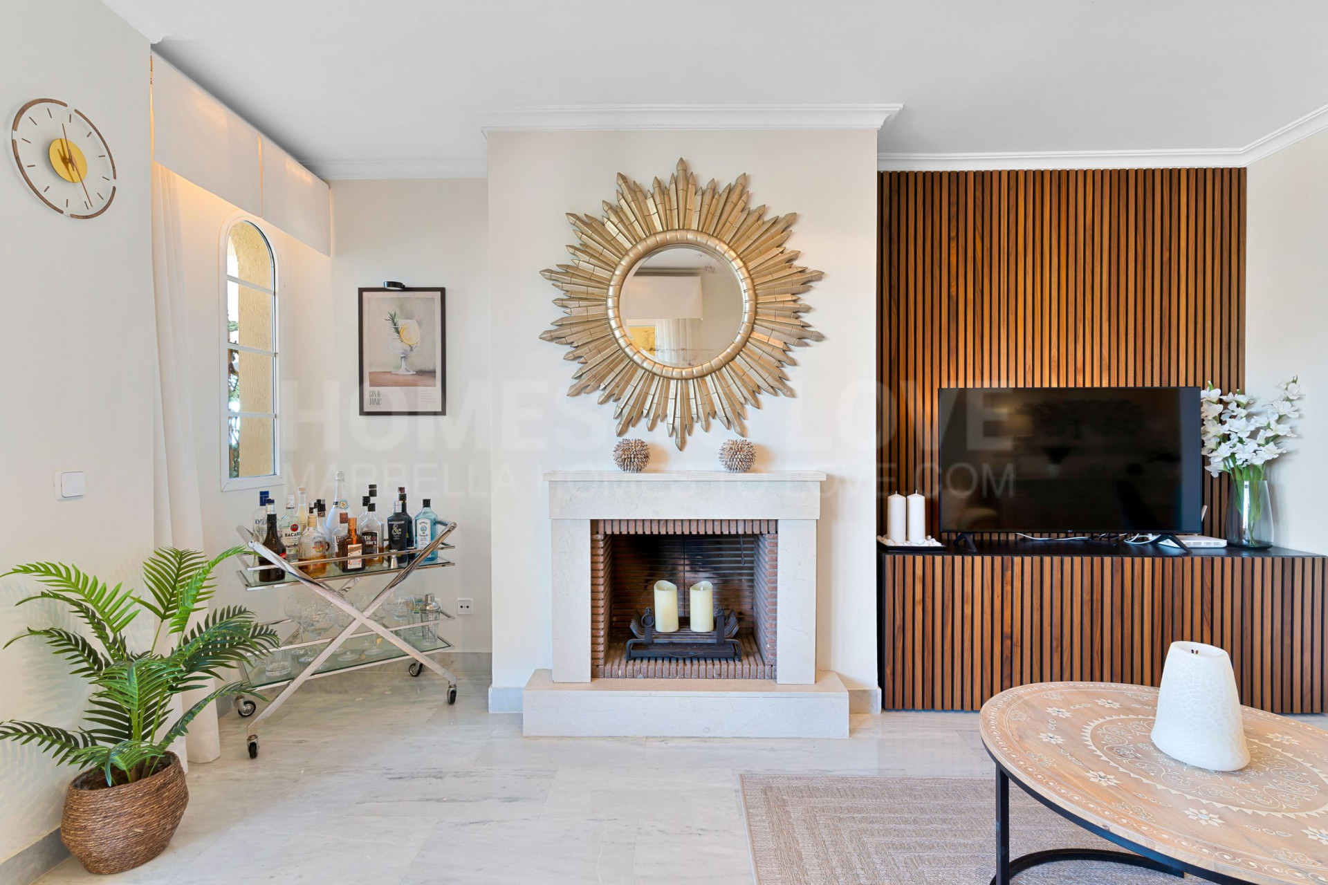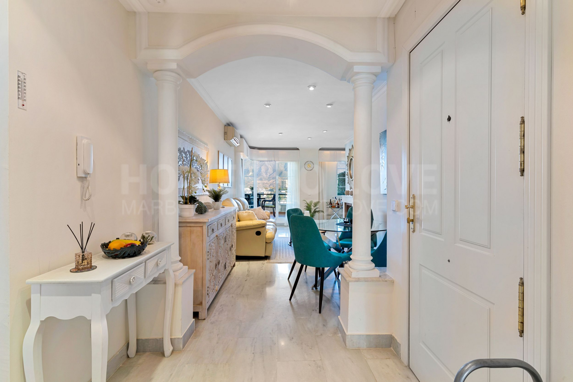 El apartamento dispone de cocina totalmente equipada, aire acondicionado, suelos de mármol y chimenea en el salón. Las ventanas de doble acristalamiento, los armarios empotrados y la puerta blindada aumentan el confort y la seguridad del hogar. La propiedad se entrega completamente amueblada y en buen estado, con mobiliario opcional disponible. También cuenta con internet de fibra óptica de alta velocidad instalado.