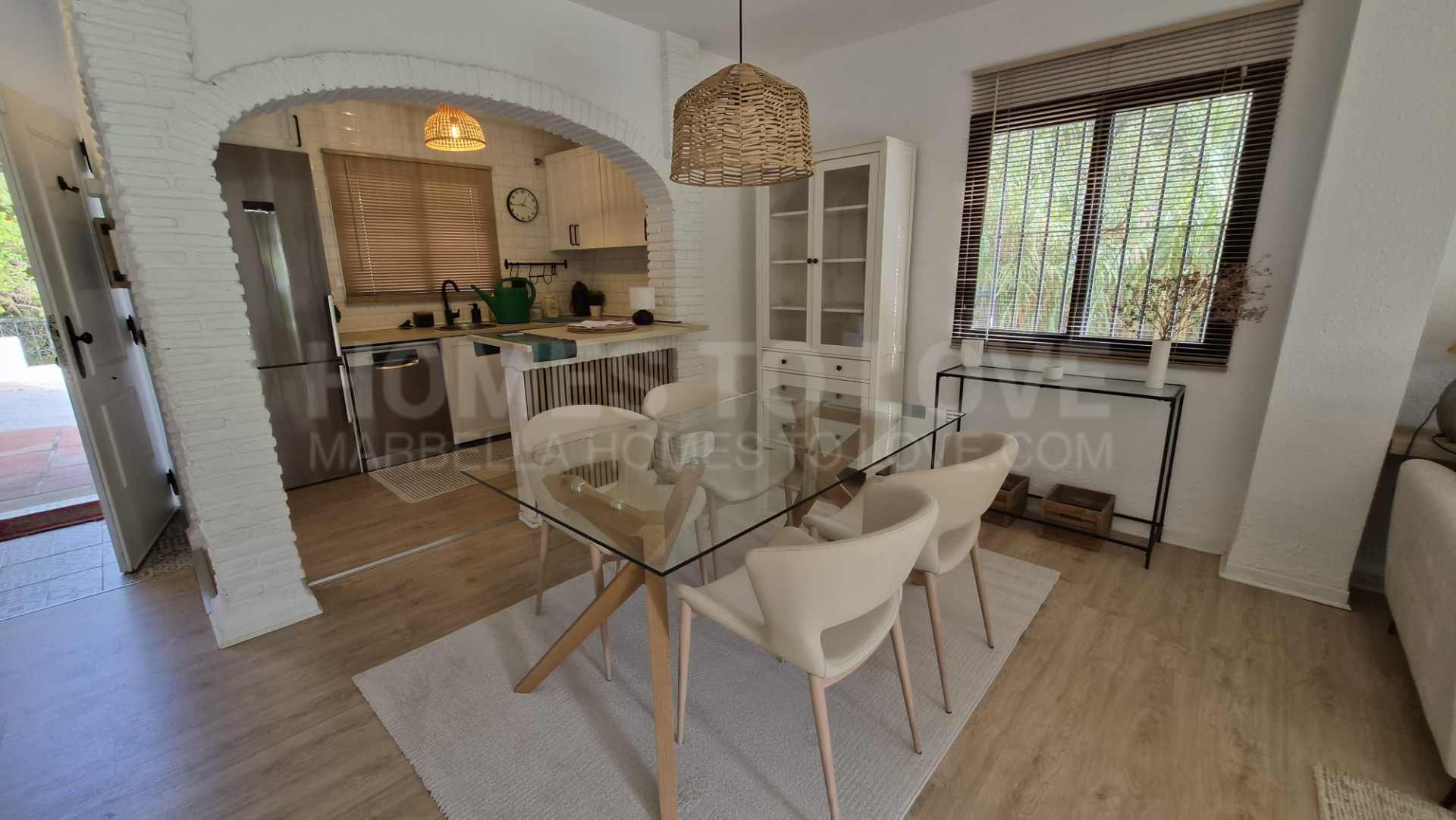 Esta casa adosada de dos plantas, con ático y jacuzzi, ha sido completamente reformada, incluyendo suelos, paredes, cocina y baños. La casa cuenta con un luminoso salón (interior y exterior) y una terraza privada.