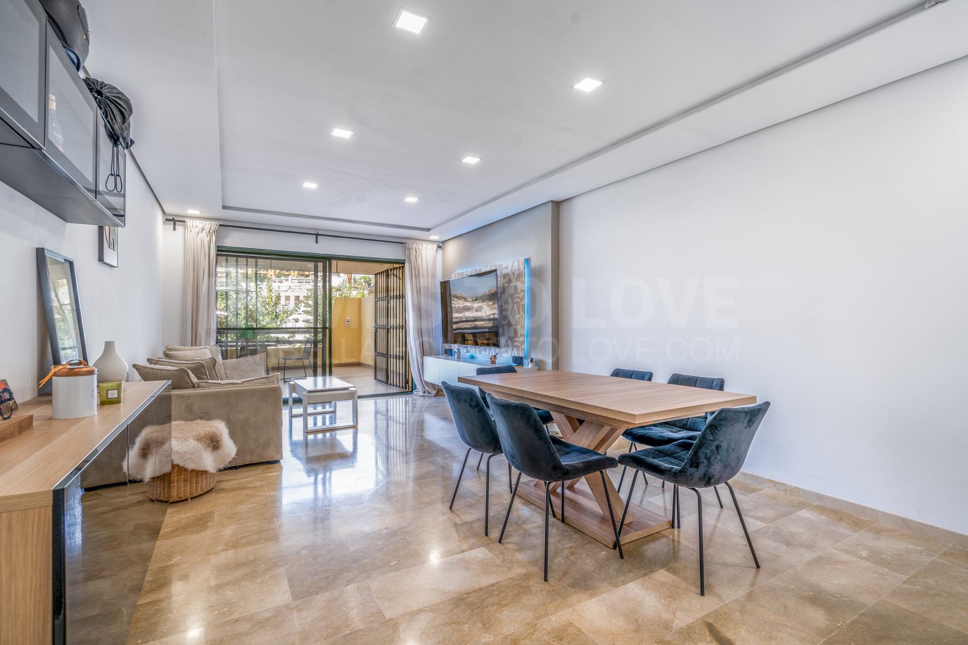 Il a été récemment rénové par les propriétaires, avec soin et passion, il y a seulement deux ans. Bien qu’il soit situé au rez-de-chaussée, la terrasse spacieuse est légèrement surélevée, donnant l’impression d’être au premier étage et offrant une intimité supplémentaire, avec vue sur la piscine.