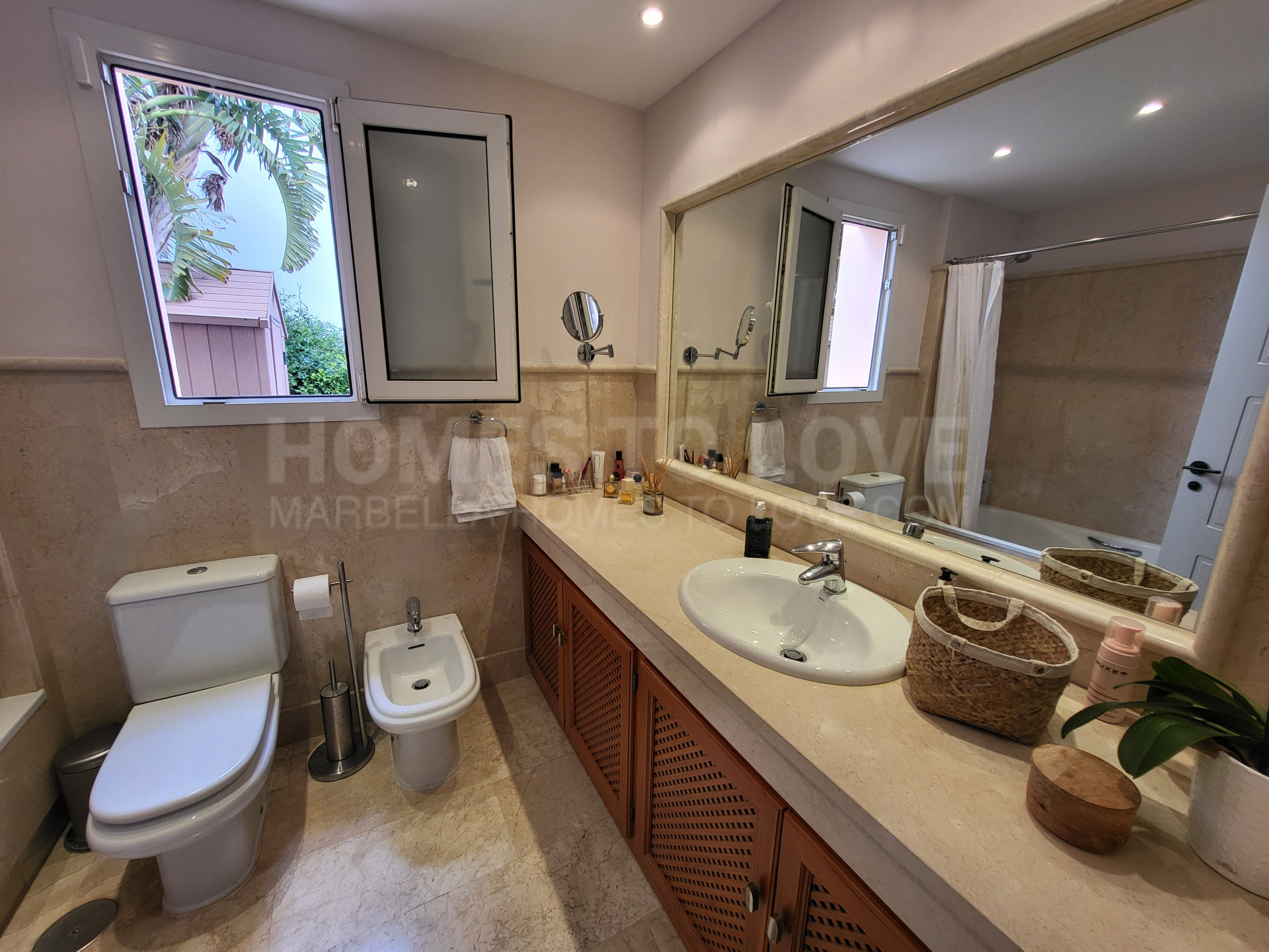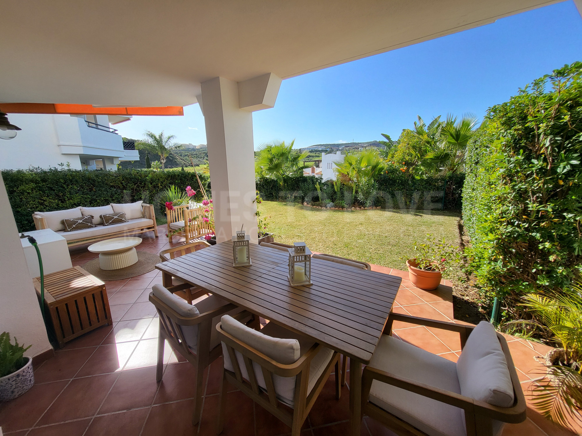 Le vaste séjour/salle à manger s’ouvre harmonieusement sur une terrasse ensoleillée et un grand jardin privatif avec vue dégagée, idéal pour se détendre, recevoir ou profiter du style de vie de la Costa del Sol. La cuisine séparée entièrement équipée est complétée par une grande buanderie, parfaite pour le quotidien. Les trois chambres sont spacieuses, la suite parentale disposant d’une salle de bains privative et d’un accès direct au jardin par d’élégantes portes-fenêtres. La terrasse couverte et le jardin privatif offrent un cadre idéal pour les repas en plein air et la vie au grand air.