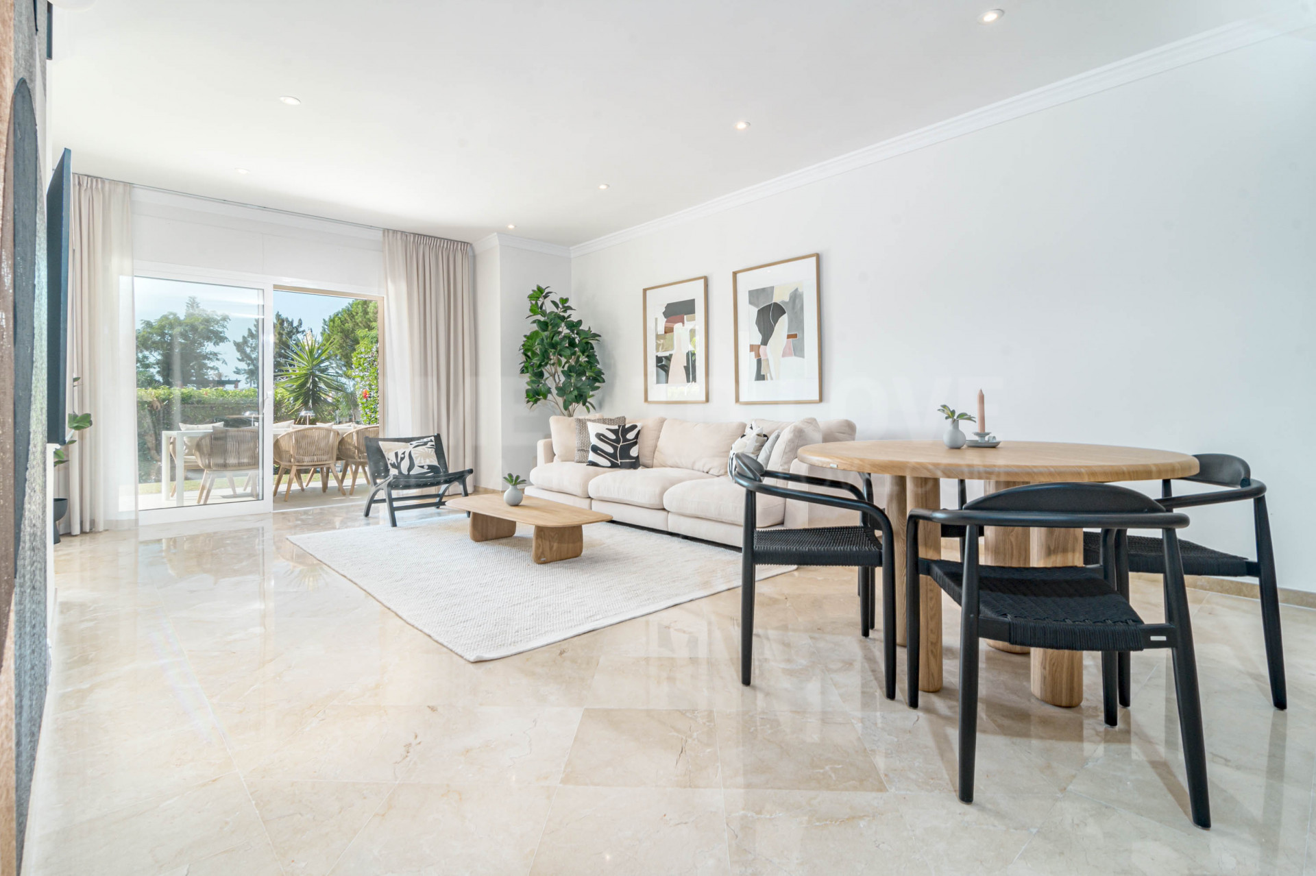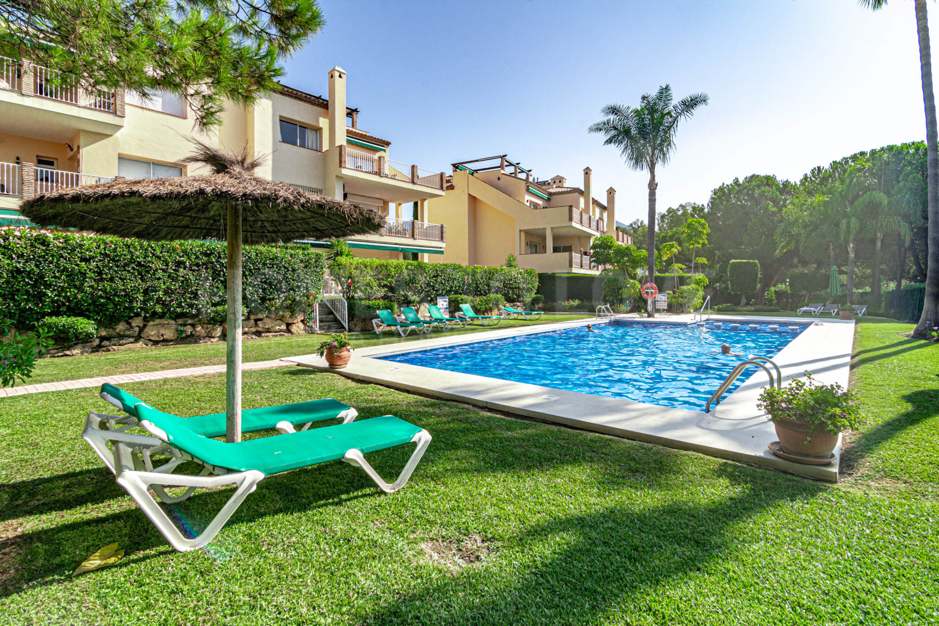 This cosy south-facing corner apartment in Pueblo de Las Brisas enjoys an excellent location right next to the pool, yet offers full privacy thanks to a surrounding hedge. Everything is on one level, with a bright open-plan living and dining area, a fully equipped kitchen, 3 bedrooms and 2 bathrooms.