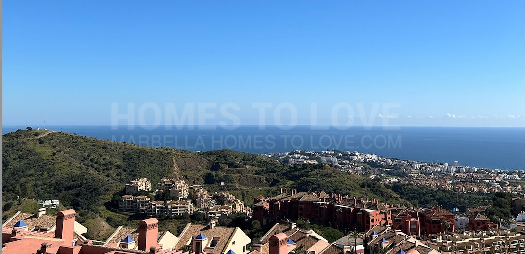 Elegant 3-bedroom residence near Marbella with 270° sea views, two terraces, jacuzzi, and premium smart home features.