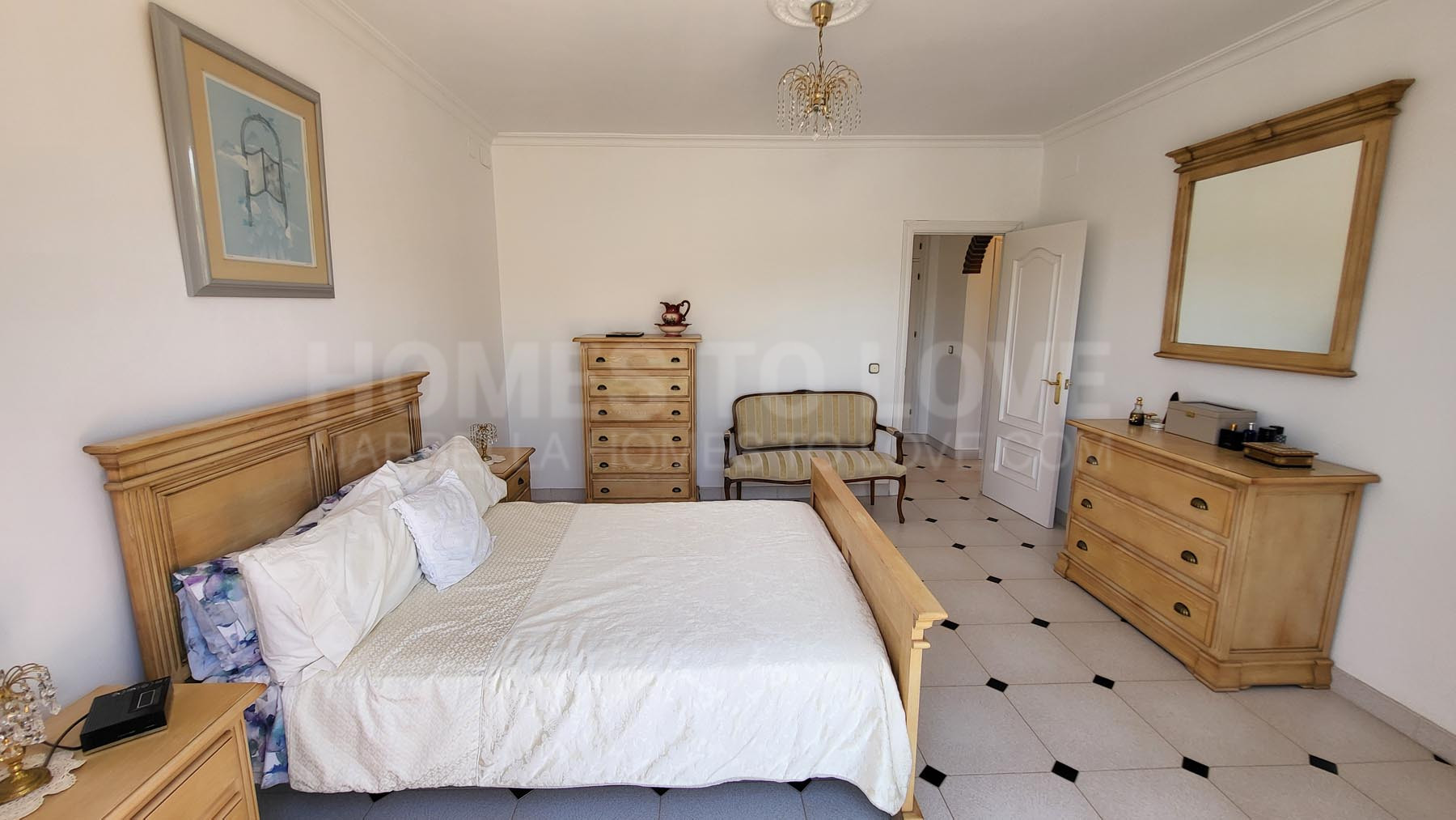 Upstairs, you’ll find four large and bright bedrooms. The master suite includes an en-suite bathroom, walk-in wardrobe, and a private terrace. The remaining three bedrooms share a full bathroom, with one of them also enjoying terrace access.