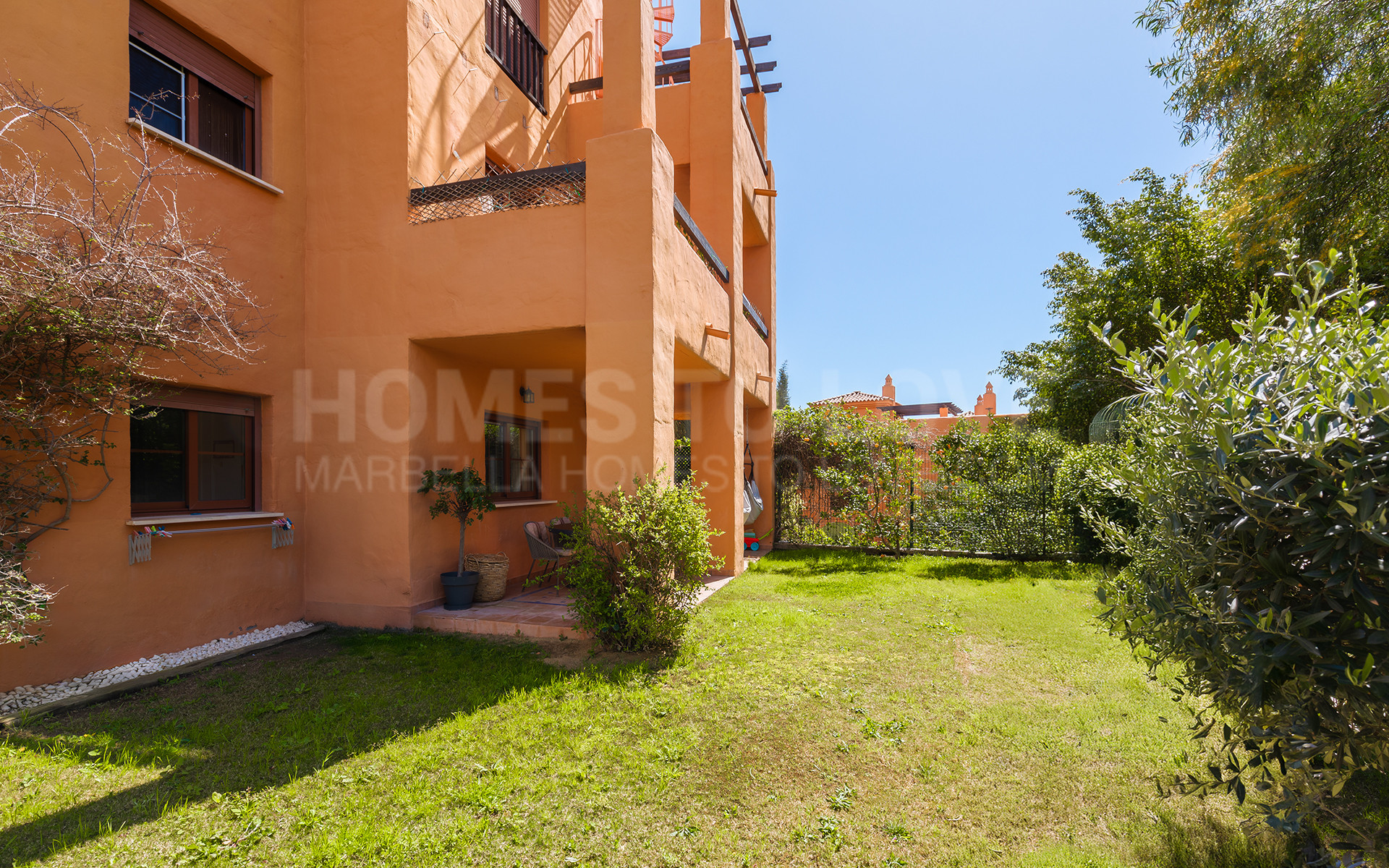 Fully renovated 3-bedroom southwest-facing garden apartment in Gazules del Sol, a fully gated and secured complex walking distance to Atalaya International School, Benahavís.