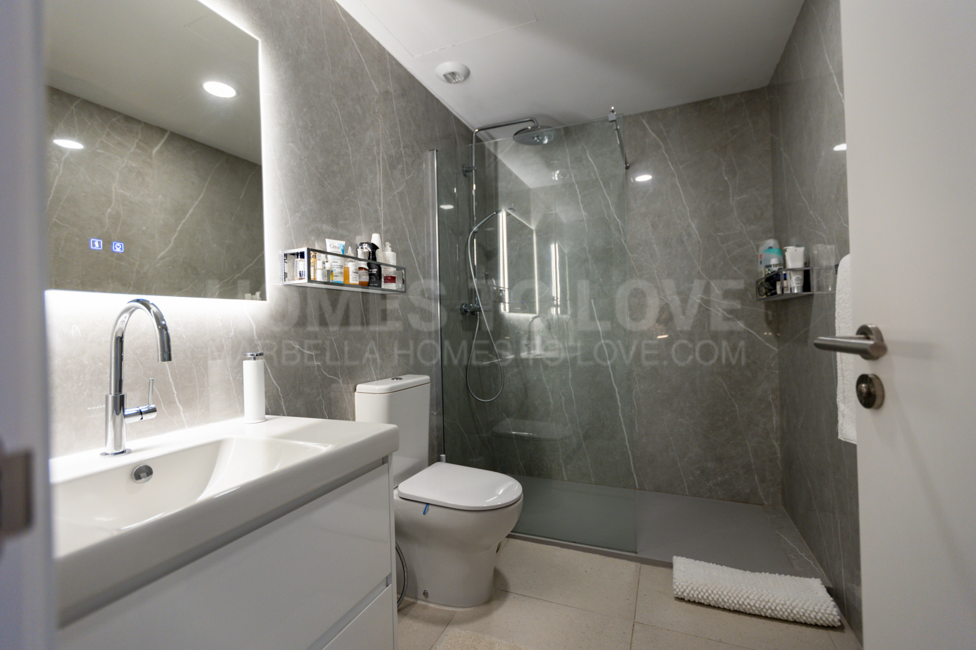 The property features three spacious bedrooms with en suite bathrooms and built-in wardrobes, complemented by an additional guest bathroom. Premium marble flooring throughout ensuring durability and ease of maintenance.