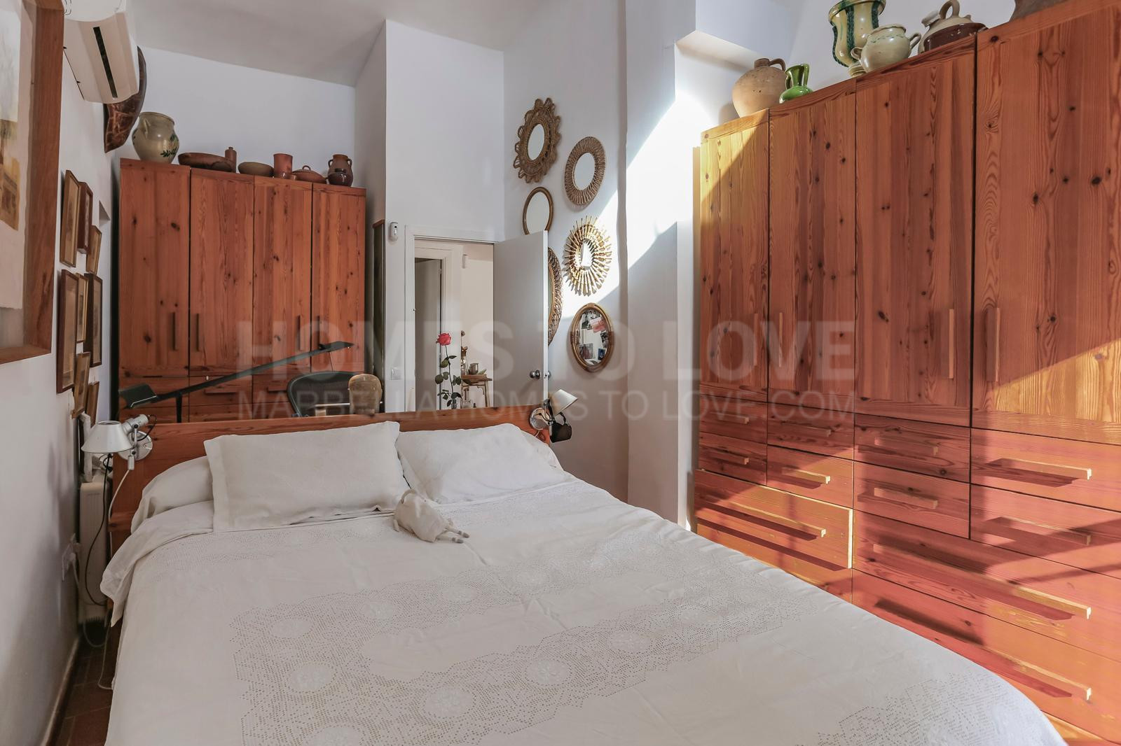 The main house has two bedrooms, two bathrooms, and a living-dining room. The common areas revolve around an elegant fireplace that provides warmth year-round. The kitchen, fully equipped and clad in custom-made solid wood, opens onto an outdoor terrace where you can enjoy the Mediterranean climate from morning till night. The private swimming pool offers fabulous views. It’s worth noting that the entire house has been fitted with spacious wardrobes and shelves made of solid pine.
