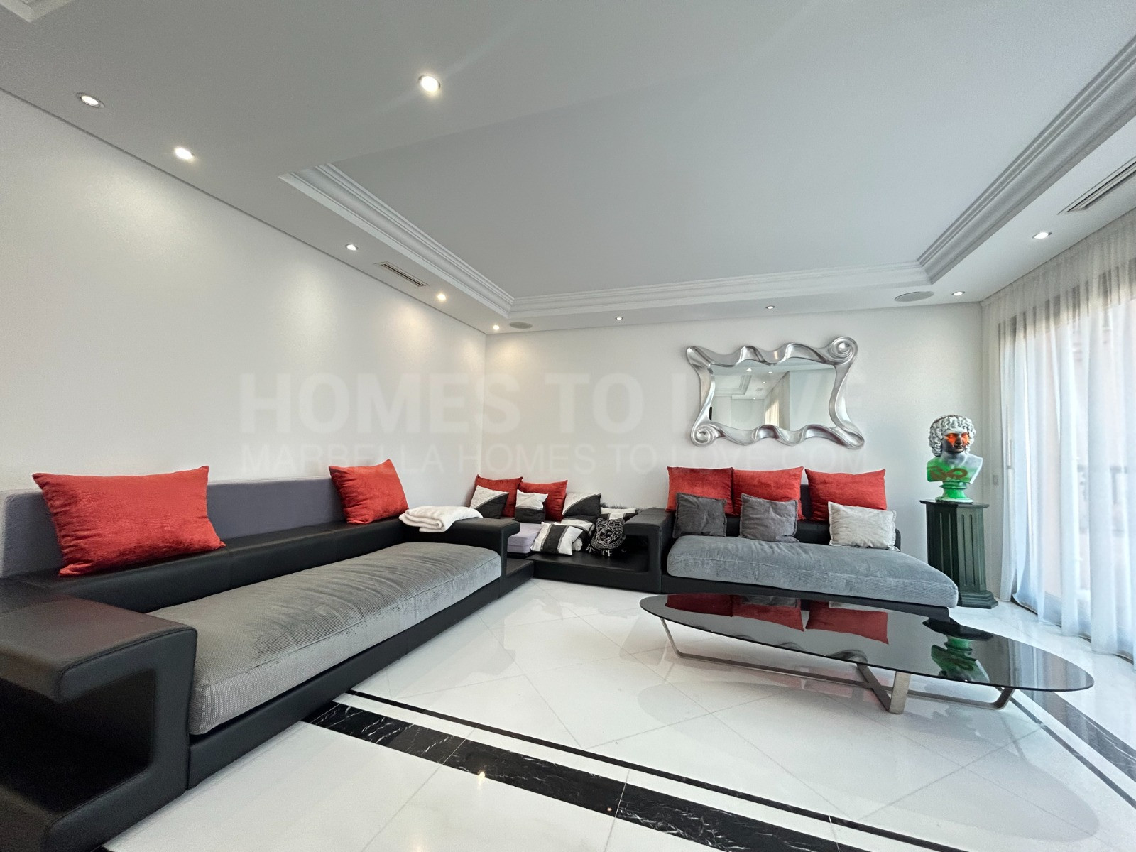 With a large terrace overlooking the sea, this wonderful apartment offers spacious living spaces with marble floors, air conditioning, and underfloor heating, both with room controls.
