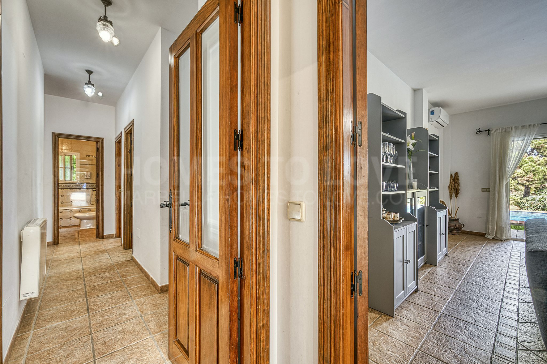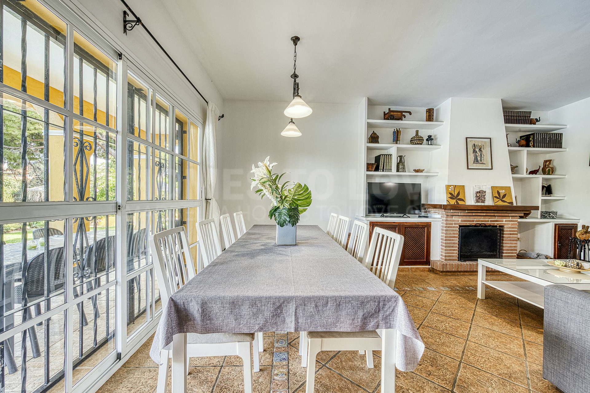 The villa is distributed over two floors and features five spacious bedrooms, three full bathrooms, a fully equipped modern kitchen and a bright living room with a fireplace, ideal for relaxing or enjoying family moments. Each room has been designed to maximise natural light and create a harmonious ambience throughout the year.